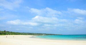 伊良部島No.1とも呼ばれる白い砂浜が弓状に広がる美しいビーチです。駐車場にはおしゃれなカフェも。