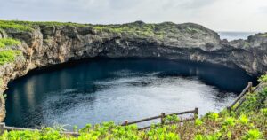 自然の侵食によってできた巨大な池が2つ並ぶ神秘的なスポット。ダイビングスポットとしても人気です。